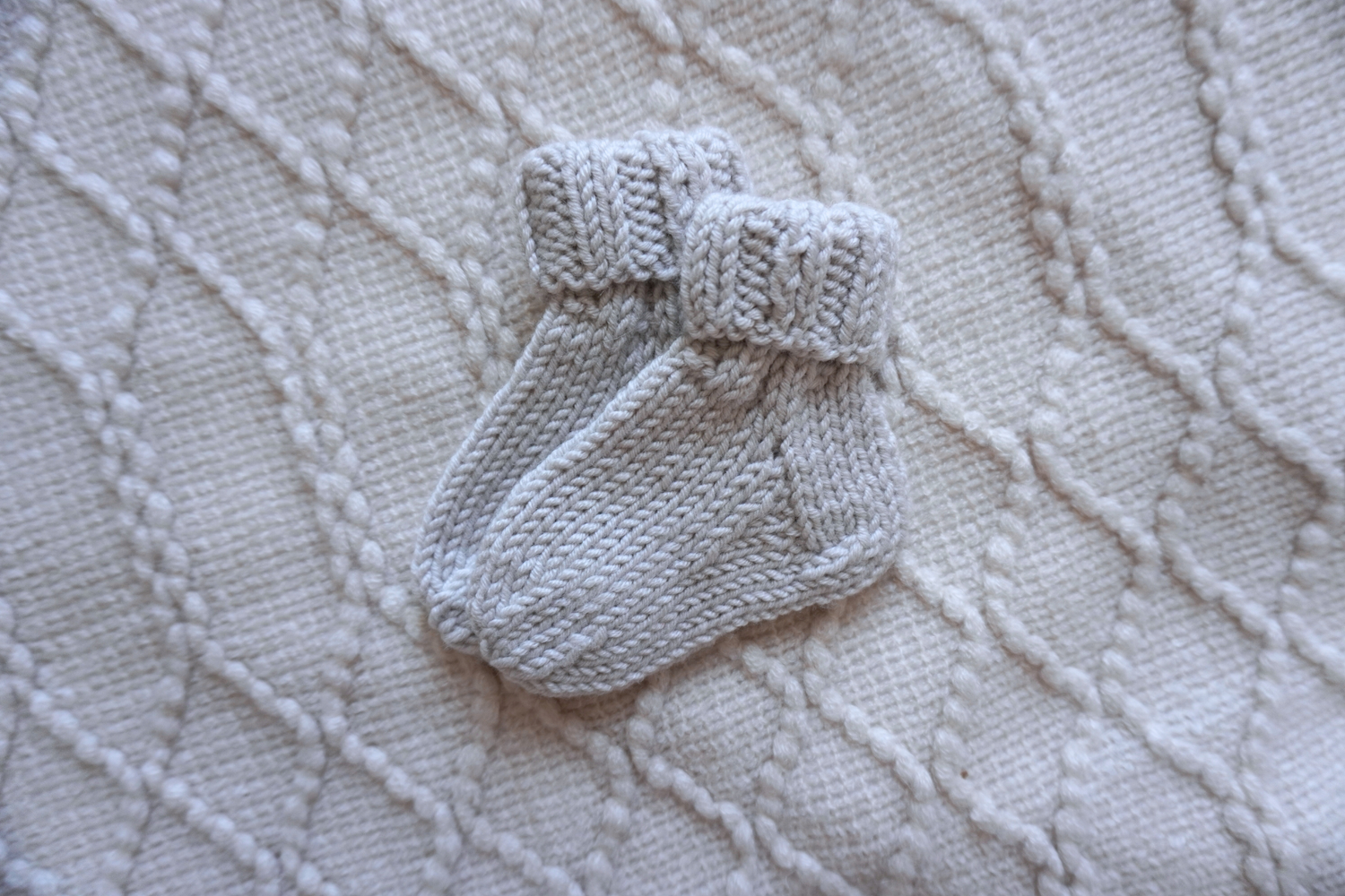 Welcome Home Hat and Sock Set – Hand-Knit Cashmere and Merino Wool Newborn Coming Home Outfit | Light Gray