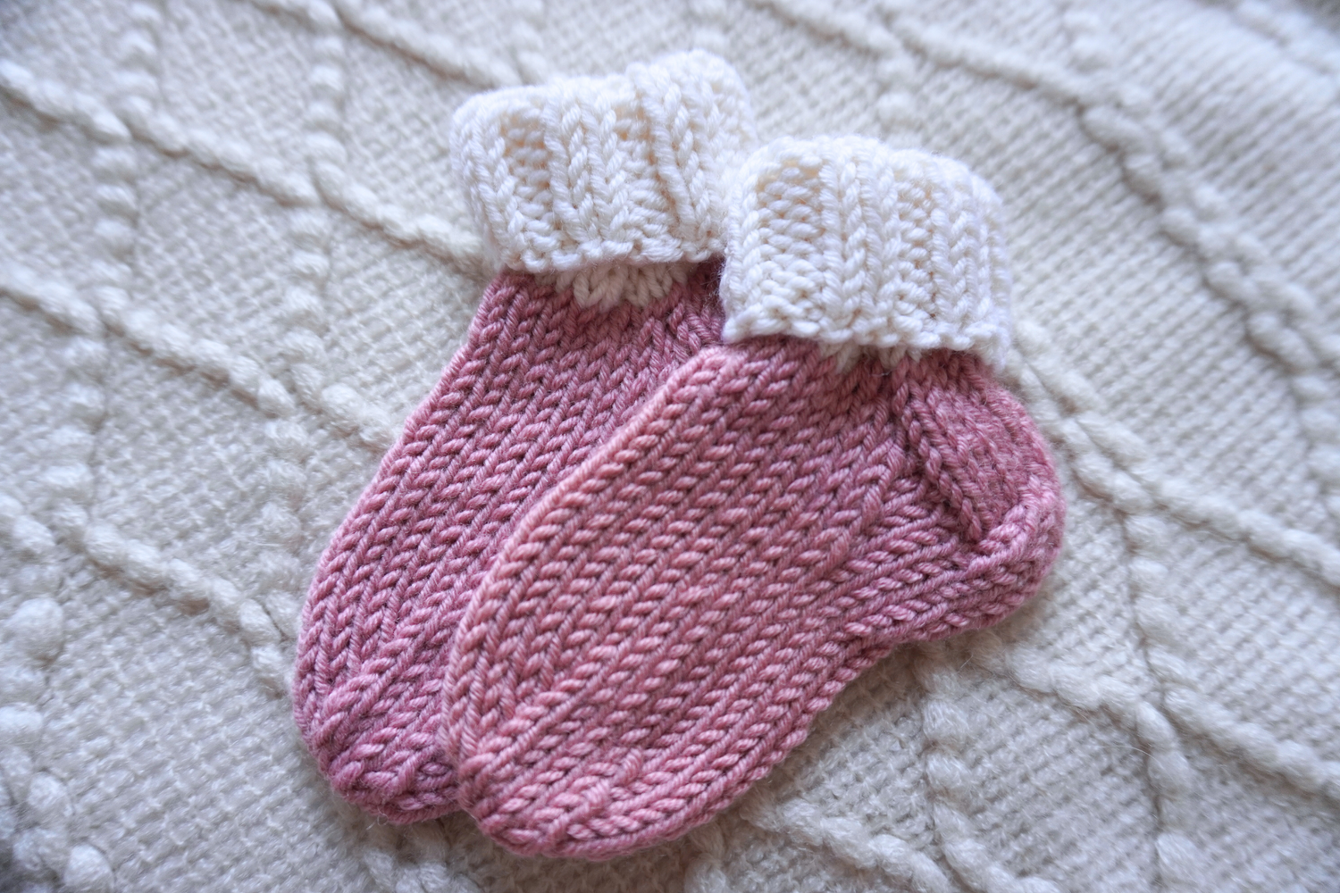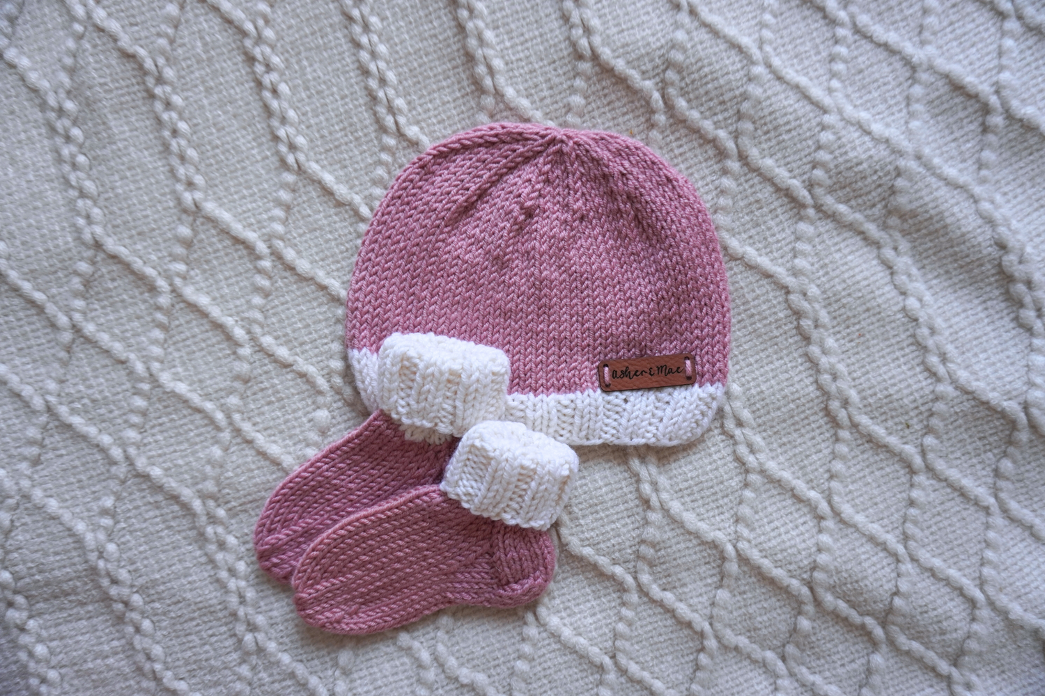 Welcome Home Hat and Sock Set – Hand-Knit Cashmere and Merino Wool Newborn Coming Home Outfit | Dark Pink & Cream